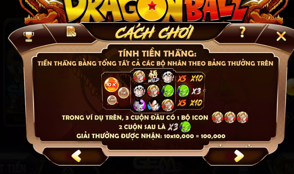 Dragonball là một trò chơi đổi thưởng có lối chơi khá đơn giản nhưng cực kỳ thú vị. Lấy cảm hứng từ câu chuyện về 7 viên ngọc rồng, game đưa người chơi vào hành trình thu thập các viên ngọc để mở khóa phần thưởng lớn.